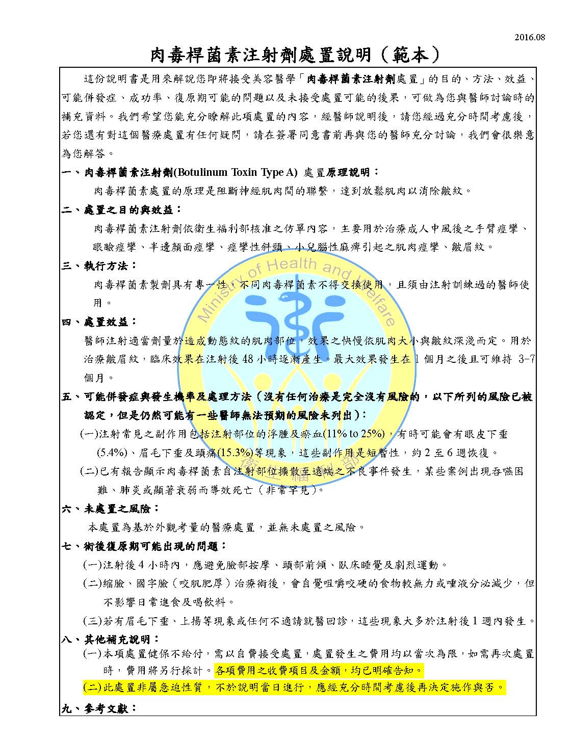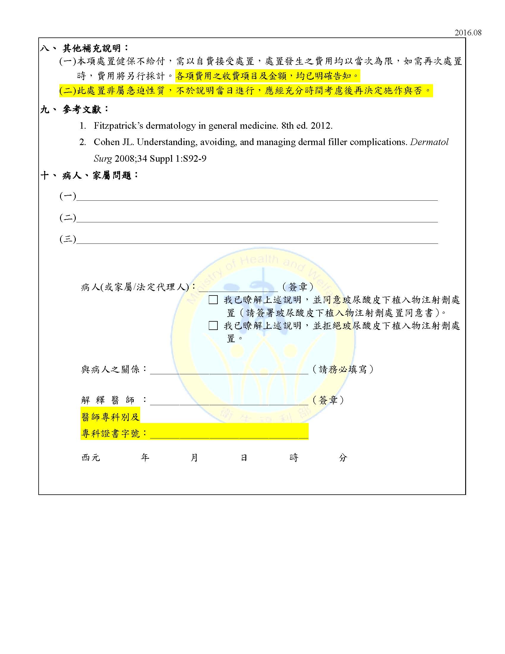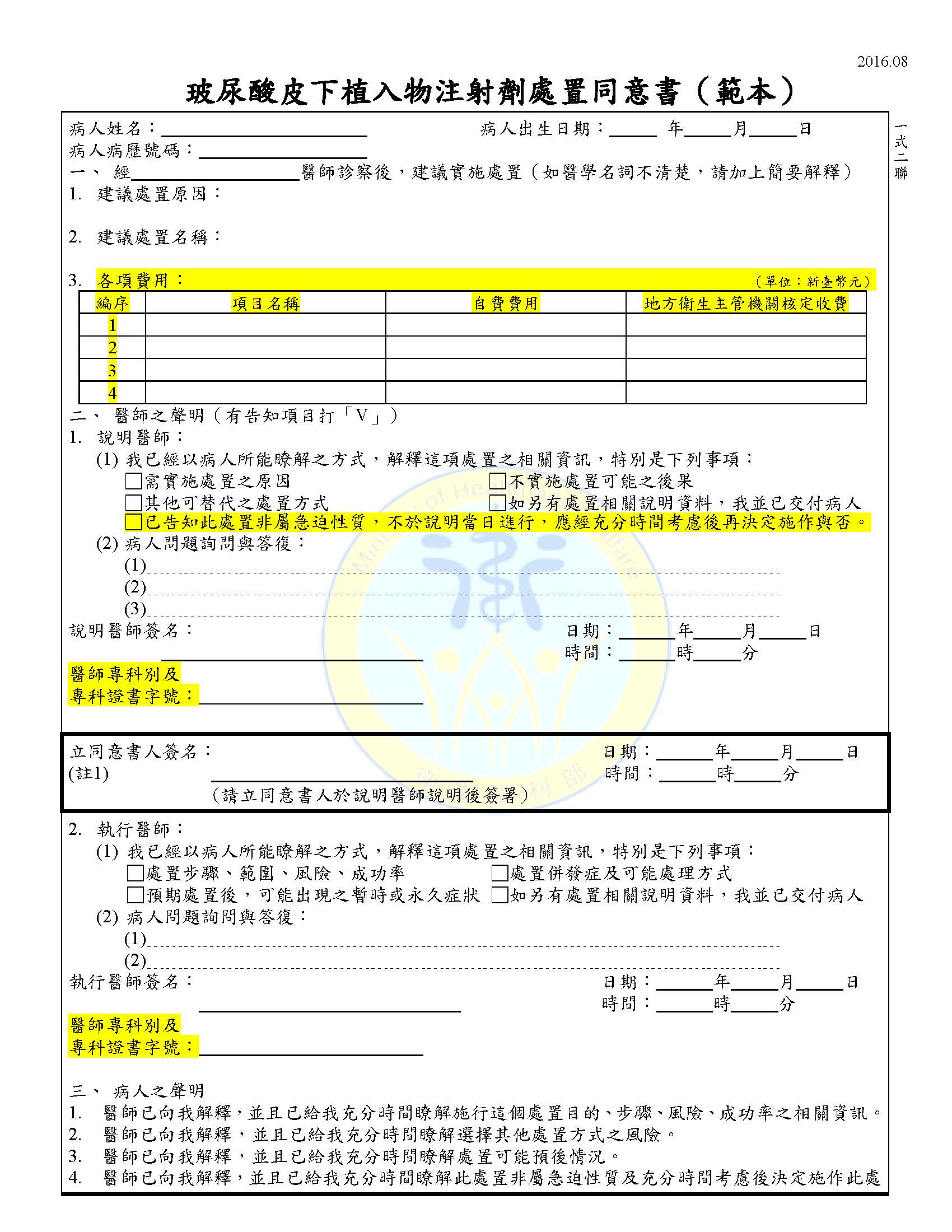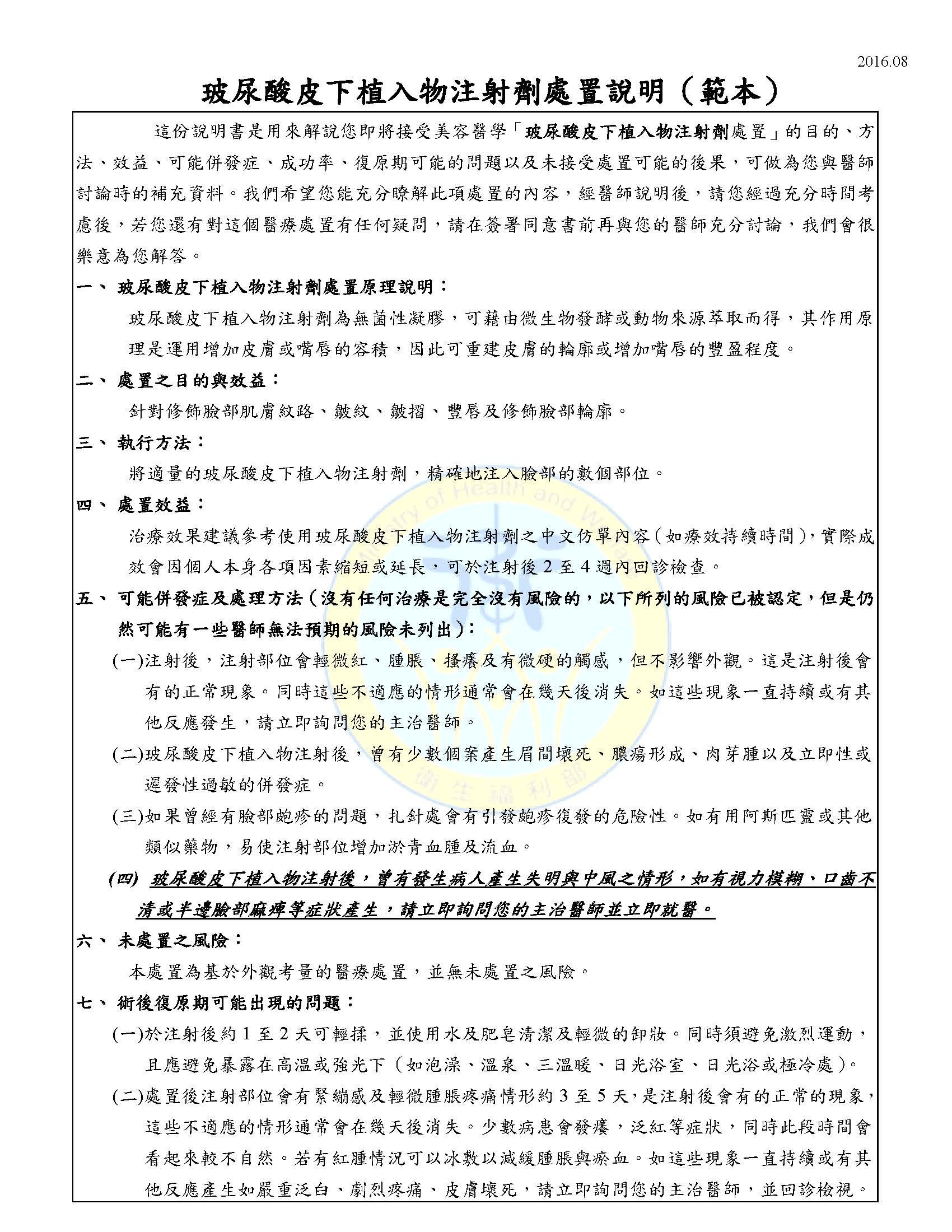 16玻尿酸皮下植入物注射劑處置同意書及說明書(範本)-201608