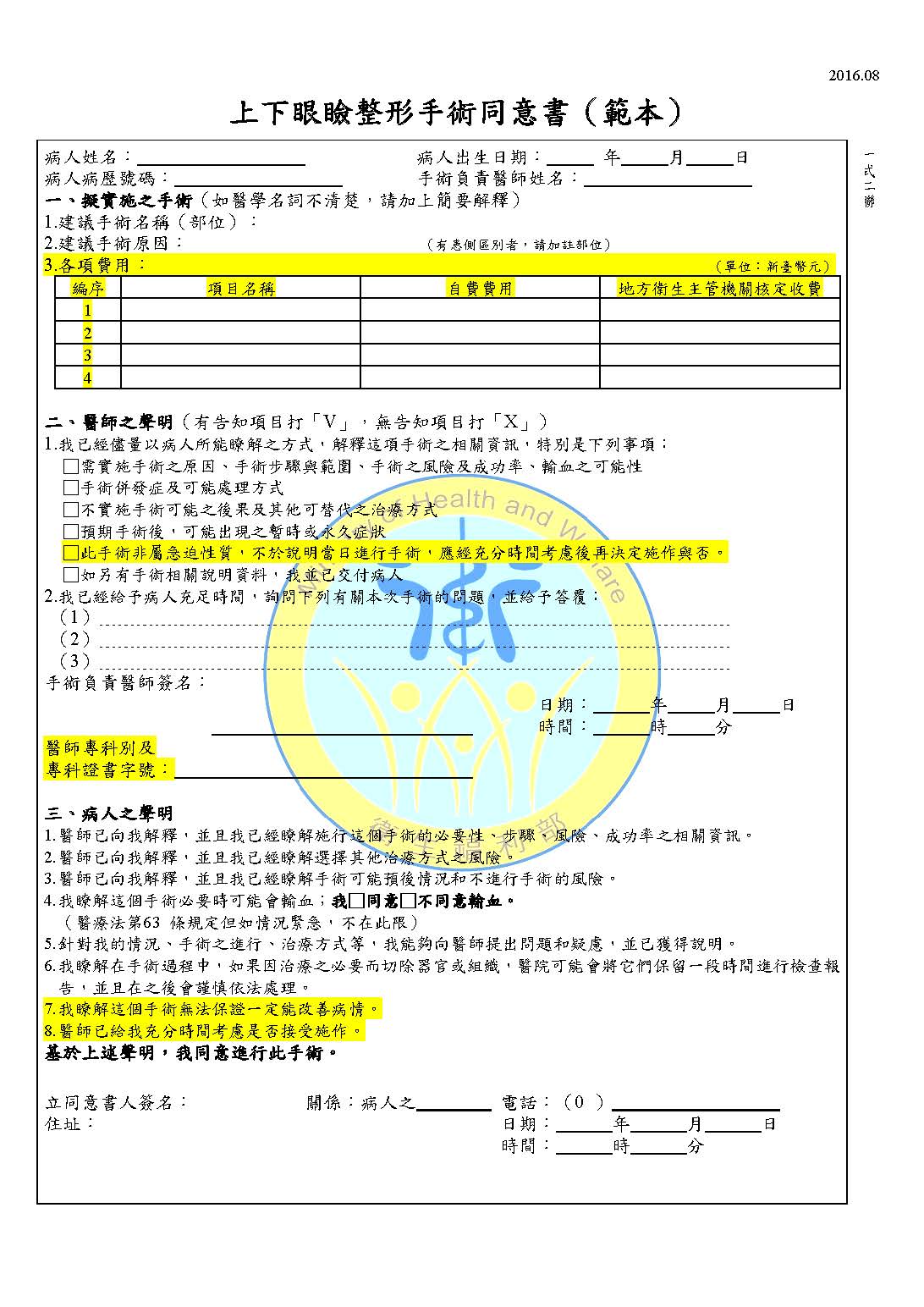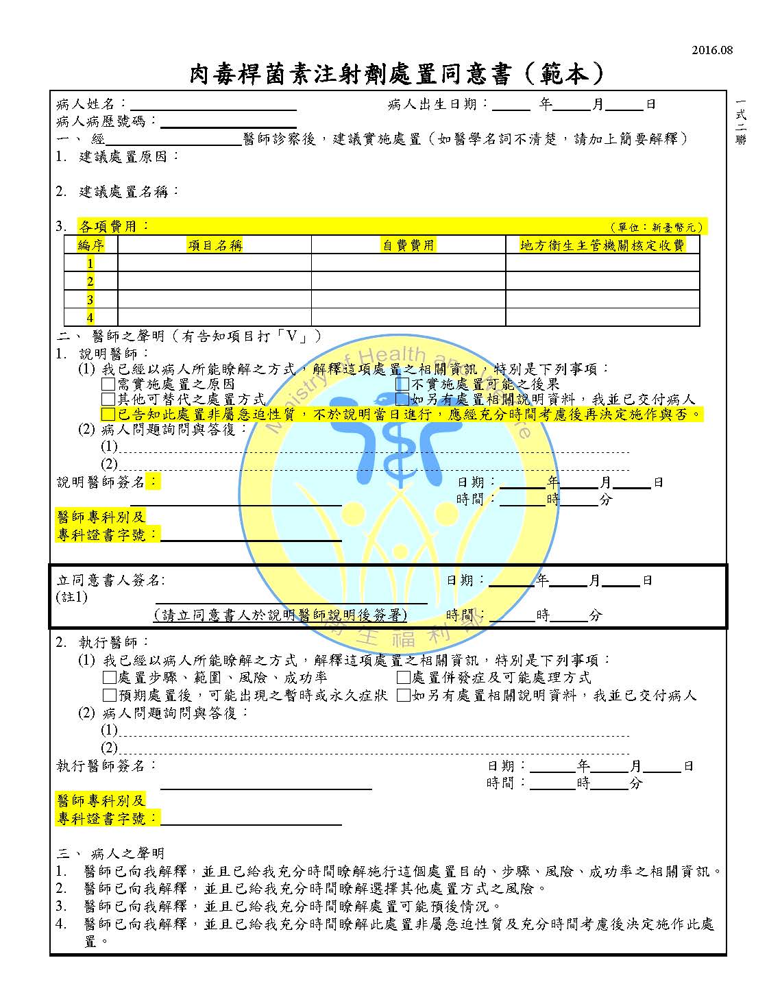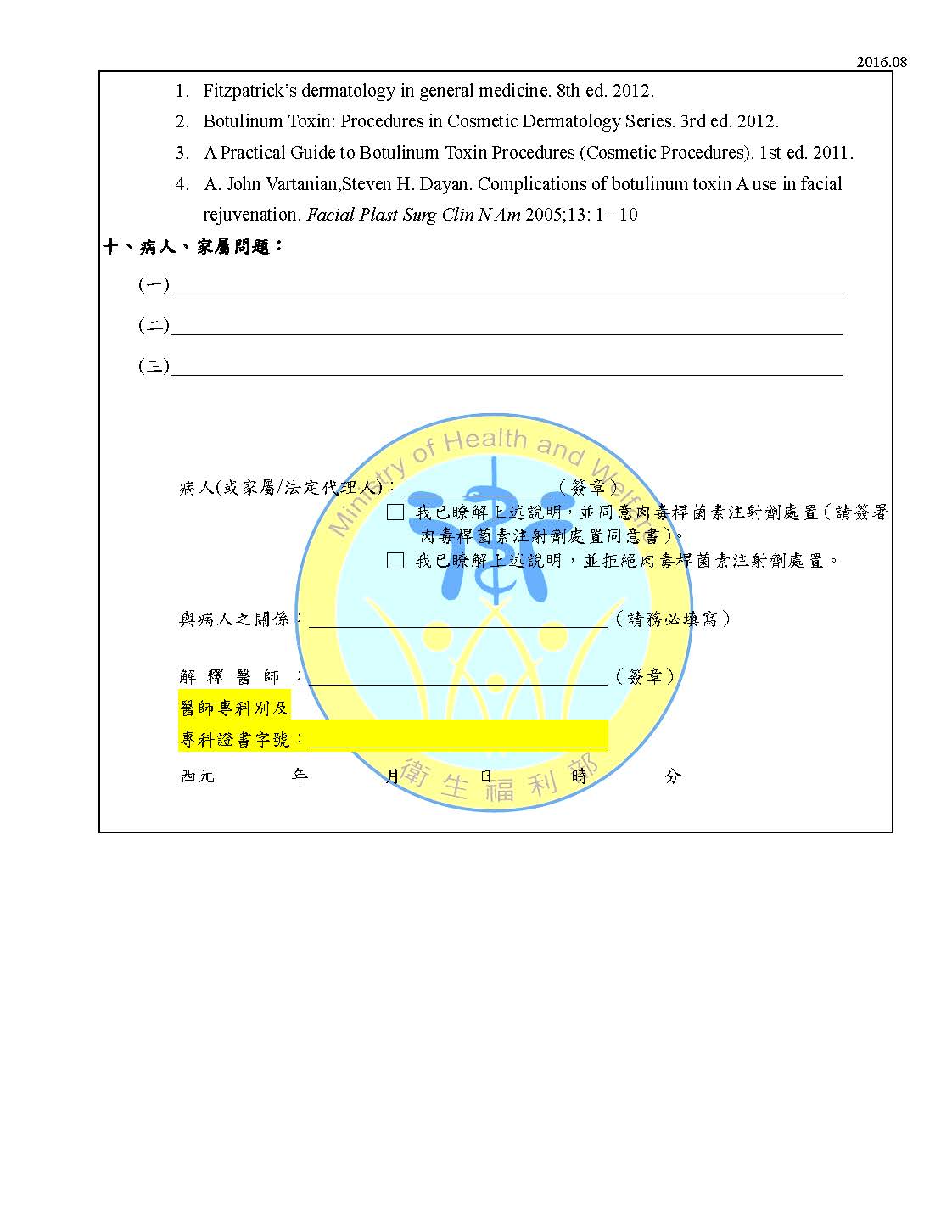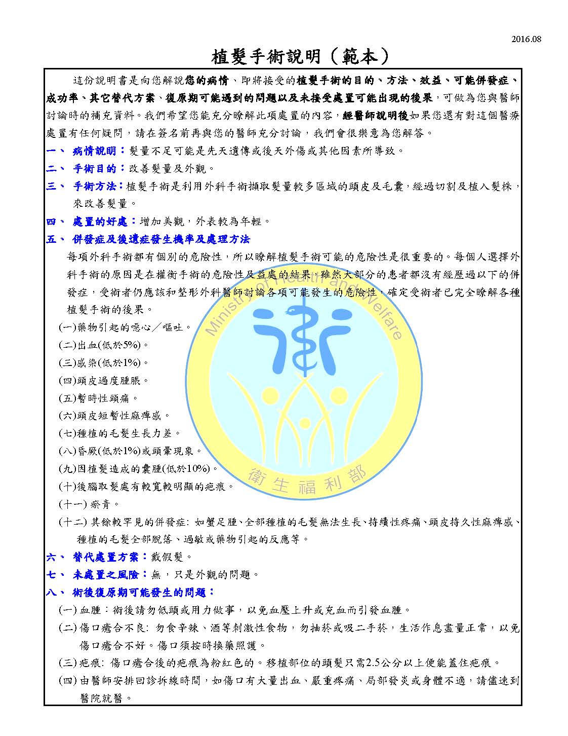 16玻尿酸皮下植入物注射劑處置同意書及說明書(範本)-201608