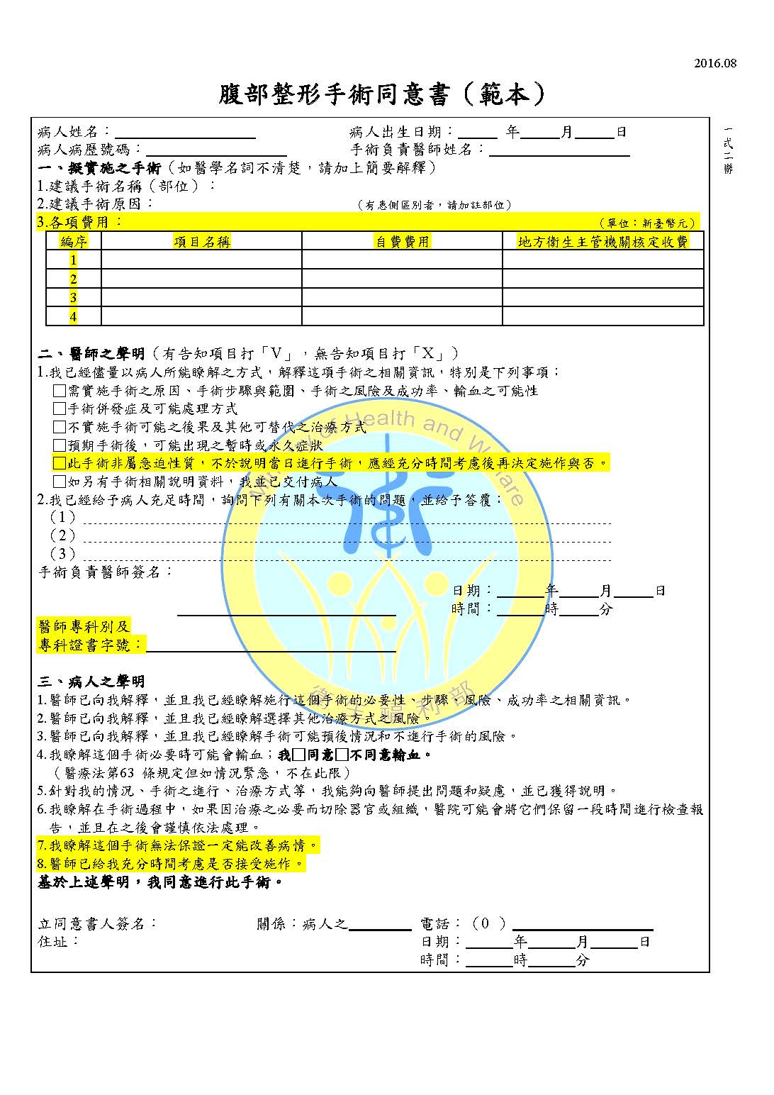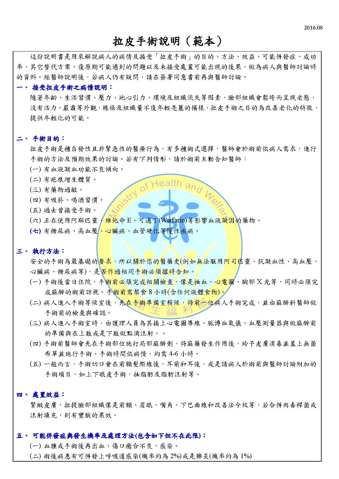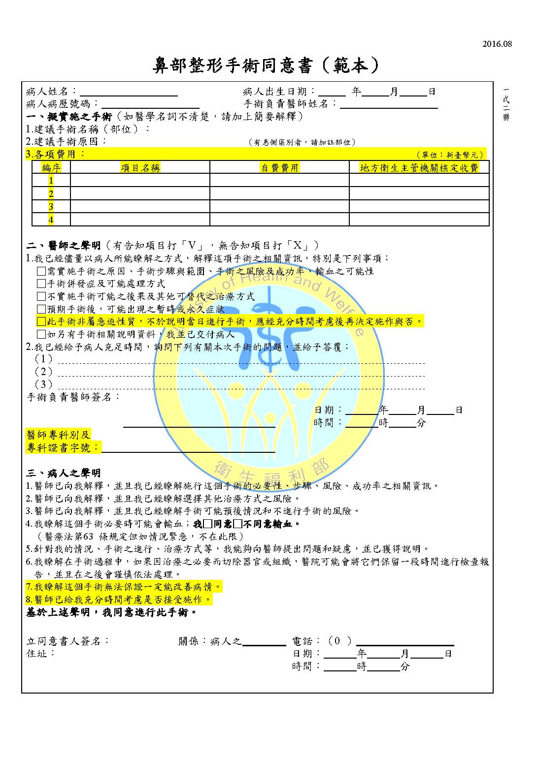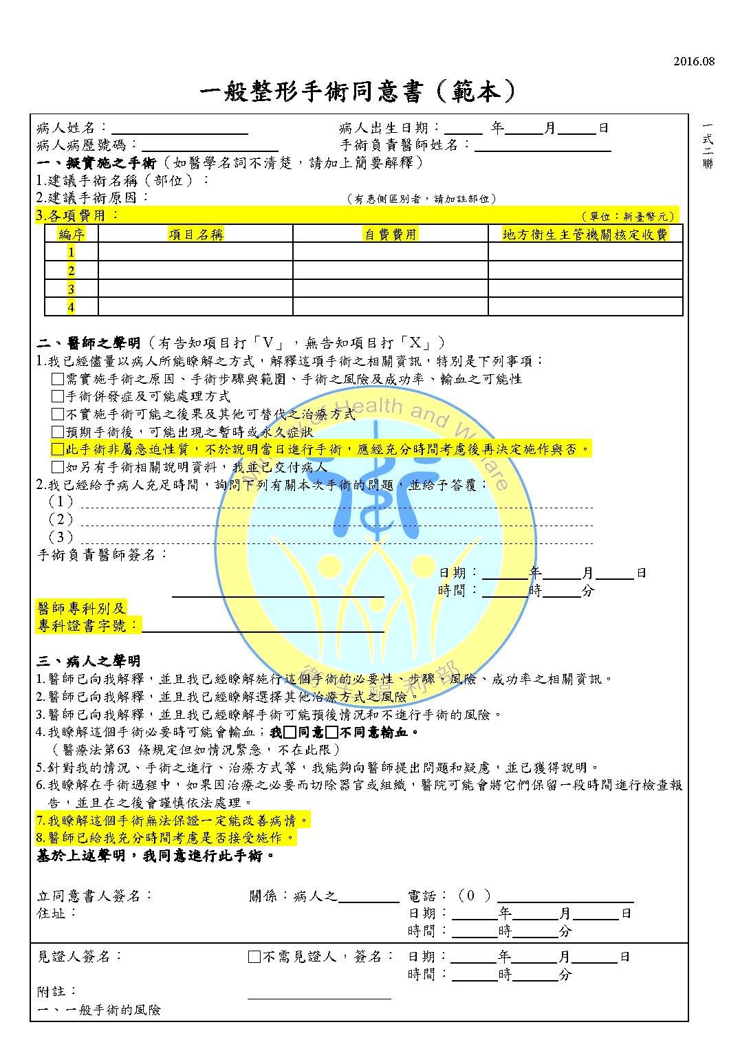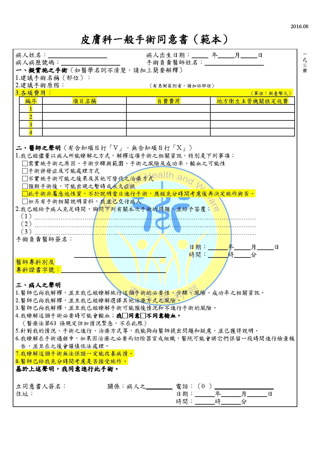 16玻尿酸皮下植入物注射劑處置同意書及說明書(範本)-201608