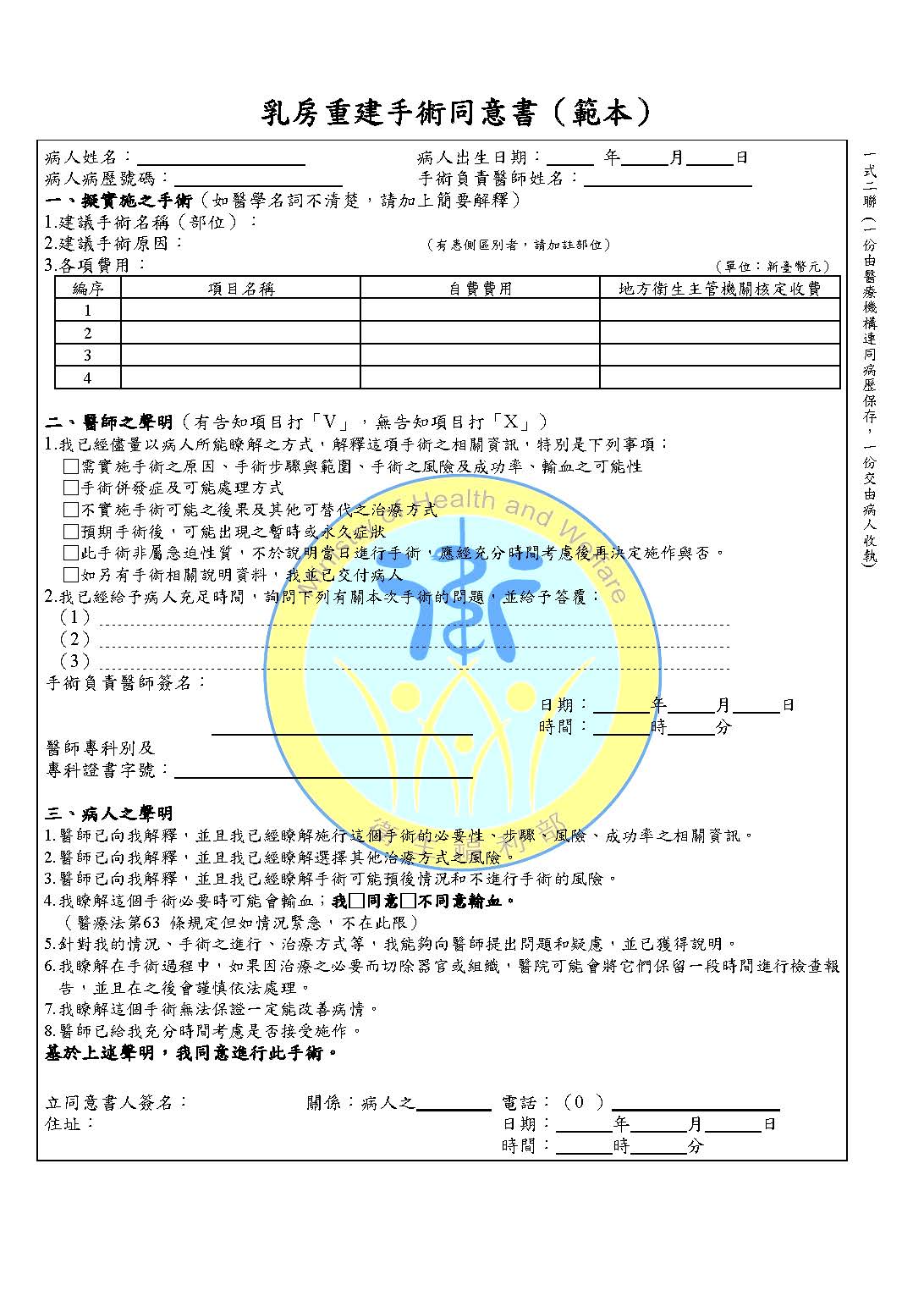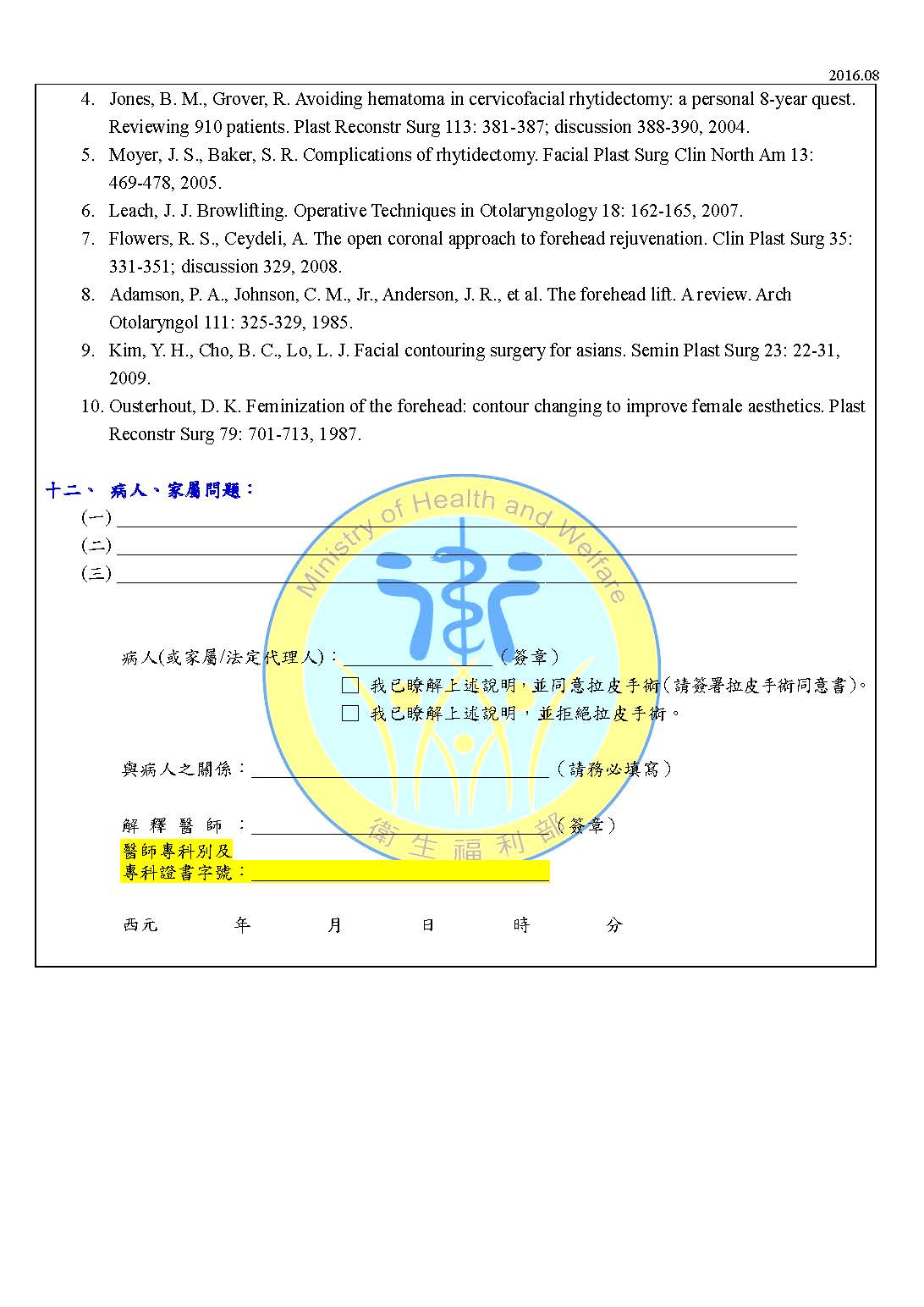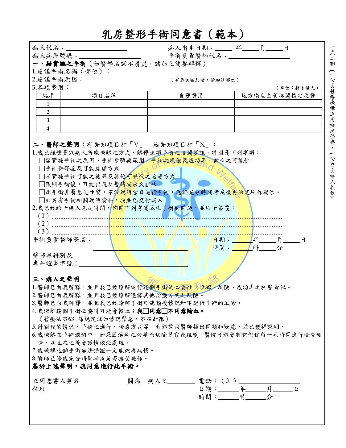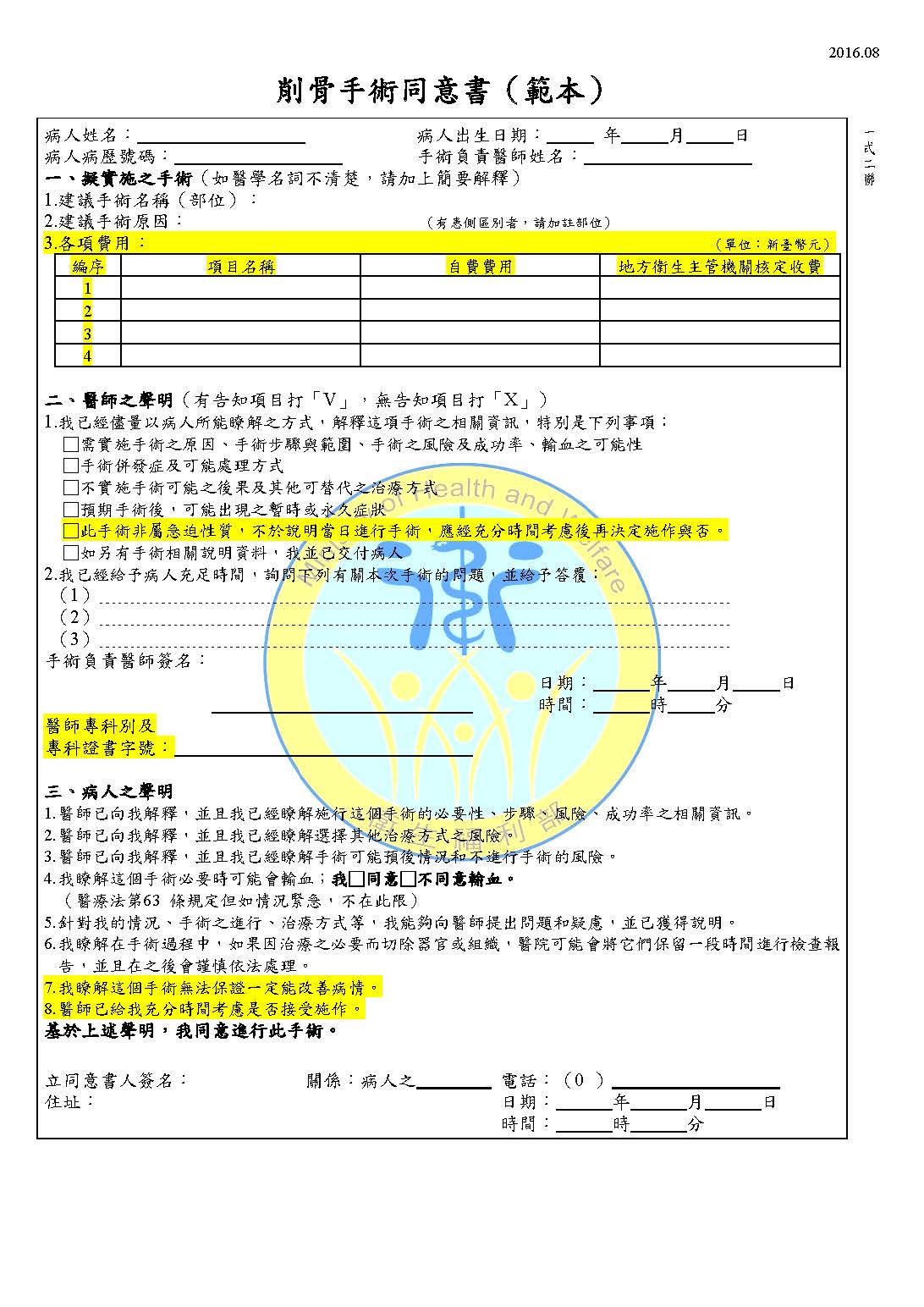 16玻尿酸皮下植入物注射劑處置同意書及說明書(範本)-201608